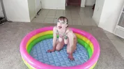 A preggo belly rub and a pee show for you, Big Tits action