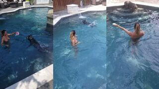 Kbass2.0, the sporty star, teaching someone to swim with all her assets!