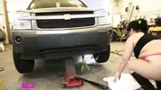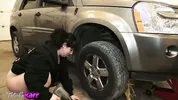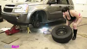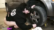 A hot chick named Falicha Karr changes tires like a real professional.