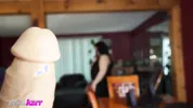Hot girl rides a big dildo from behind with amazing technique