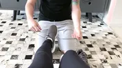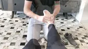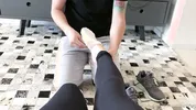 Footjob after the gym with sweaty feet excitement
