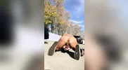 An exhibitionist gets fucked hard in the parking lot, loads shot.