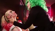 Harley Quinn cosplayer gets punished with rough lesbian anal sex