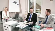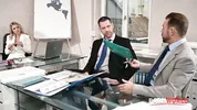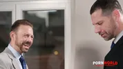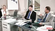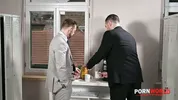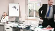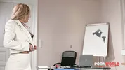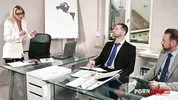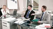 A frustrated boss, stunning MILF Shalina Devine, orders double penetration on PornWorld