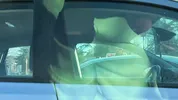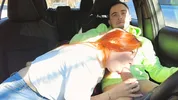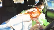 A guy fucks a girl with long legs in the car publicly