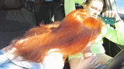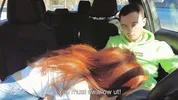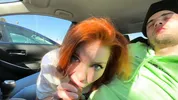 Public car blowjob and cum swallowing with a sexy redhead in the street