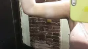 A pregnant girl is peeing in public toilet and gets horny