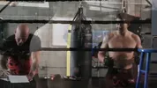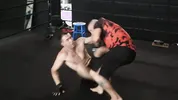 Derrickpierce and Will Pounder rehearsing for a big fight scene with Kay Brand P0