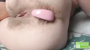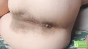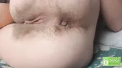 Hairy pussy play and farting action with a pregnant model