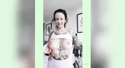 I love sucking my big tits, a sexy fat woman showed me